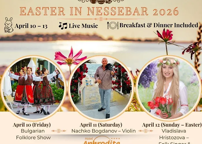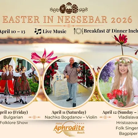 Базилика Святой Богородицы Елеуса находится всего в 19 минутах ходьбы от 4-звездочный Aphrodite Beach Hotel, а Церковь Святой Софии — менее чем в 2 км. Культурные достопримечательности района включают Археологический музей города Несебр, расположенный в 18 минутах пешей прогулки. Одна из самых популярных достопримечательностей города, — Аква Парадайз, находится приблизительно в 3 км от отеля. Автобусная остановка Gorubso находится возле отеля Aphrodite Beach. Расстояние в 30 км от этого отеля до аэропорта Бургаса можно преодолеть примерно за 27 минут на авто.